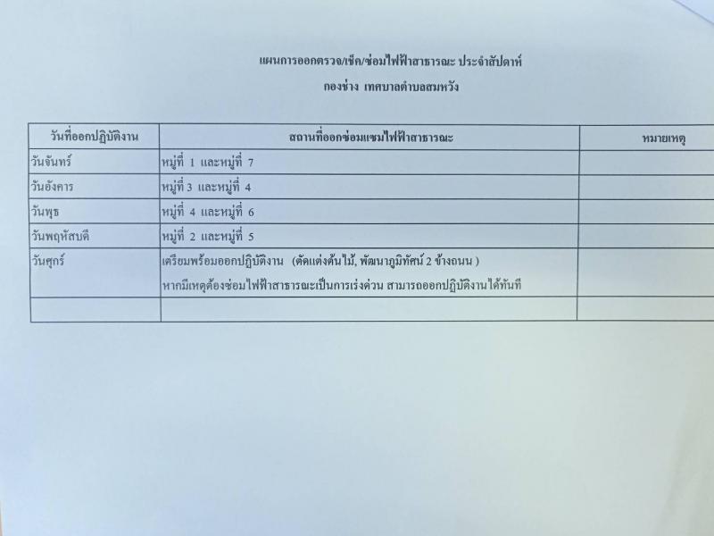 เทศบาลตำบลสมหวัง แจ้งแผนการออกปฏิบัติงานตรวจเช็ค/ซ่อมไฟฟ้าสาธารณะประจำสัปดาห์