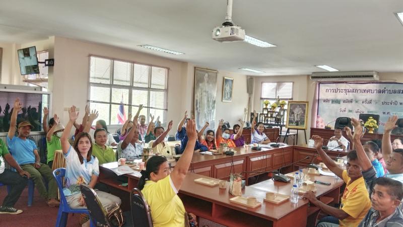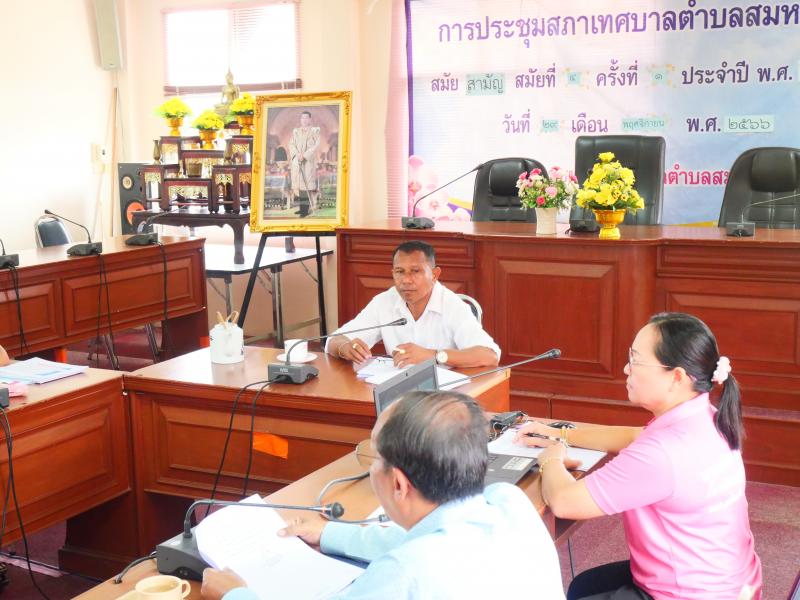 นายนิติธร ทองชิต นายกเทศมนตรีตำบลสมหวัง พร้อมด้วย รองนายกเทศมนตรี สมาชิกสภาเทศบาล ปลัดเทศบาล และ นักพัฒนาชุมชนชำนาญการ