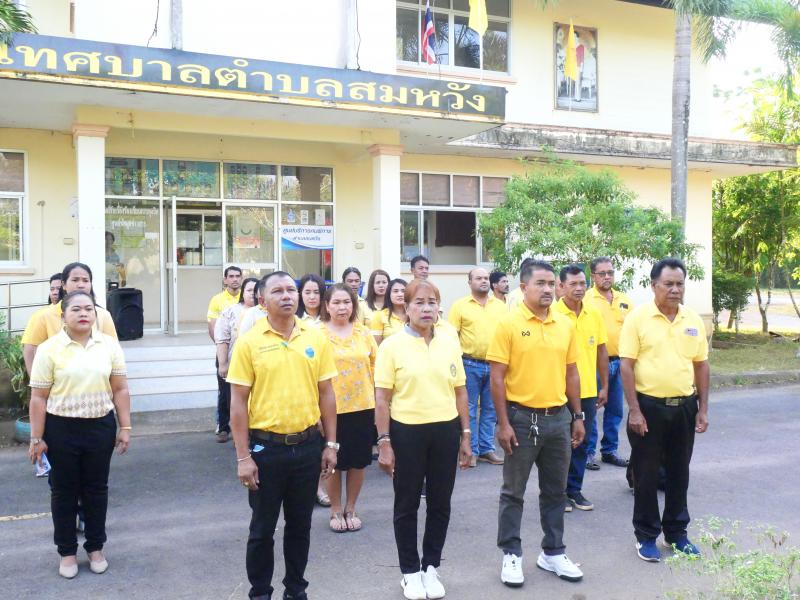 นายนิติธร ทองชิต นายกเทศมนตรีตำบลสมหวัง พร้อมด้วย คณะผู้บริหาร สมาชิกสภาเทศบาล ปลัดเทศบาล หัวหน้าส่วนราชการ ข้าราชการ พนักงาน และลูกจ้างเทศบาลตําบลสมหวัง