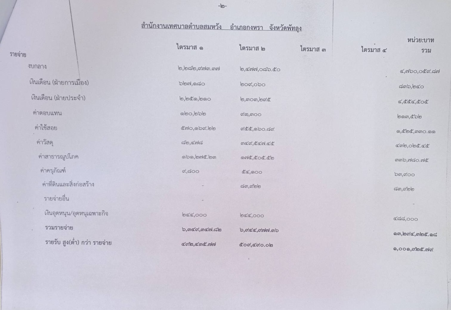 รายงานรายรับ-รายจ่าย ประจำปีงบประมาณ 2564 ประจำไตรมาส 2