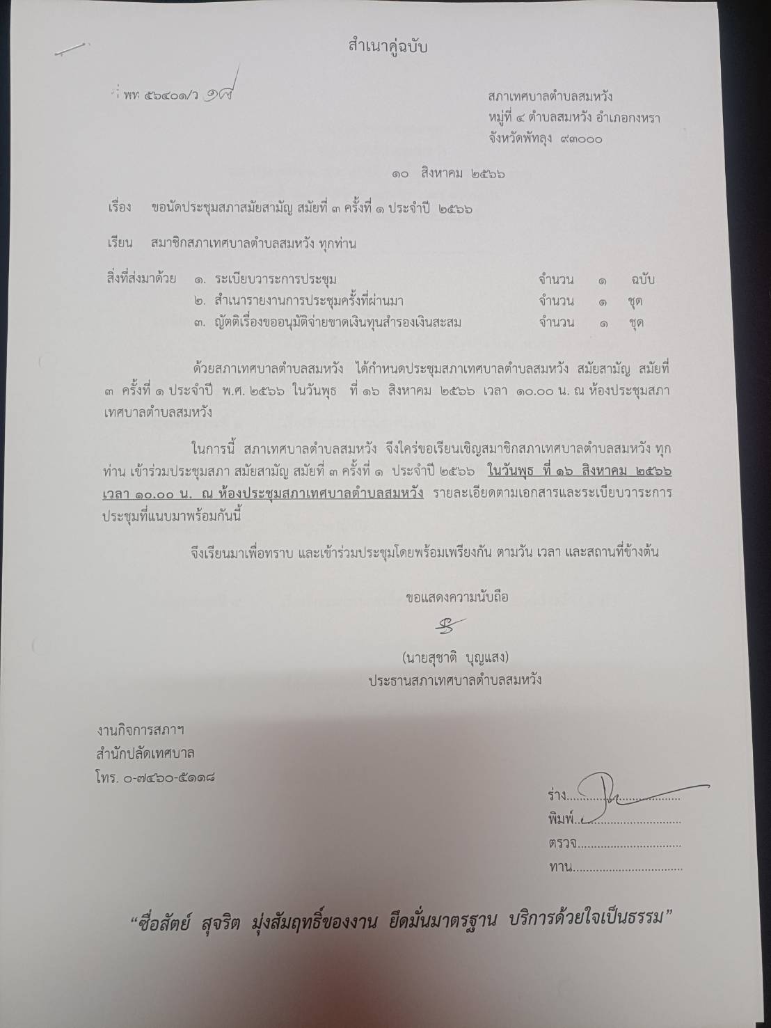 ขอนัดประชุมสภาฯ สมัยสามัญ สมัยที่3 ครั้งที่1ประจำปี 2566