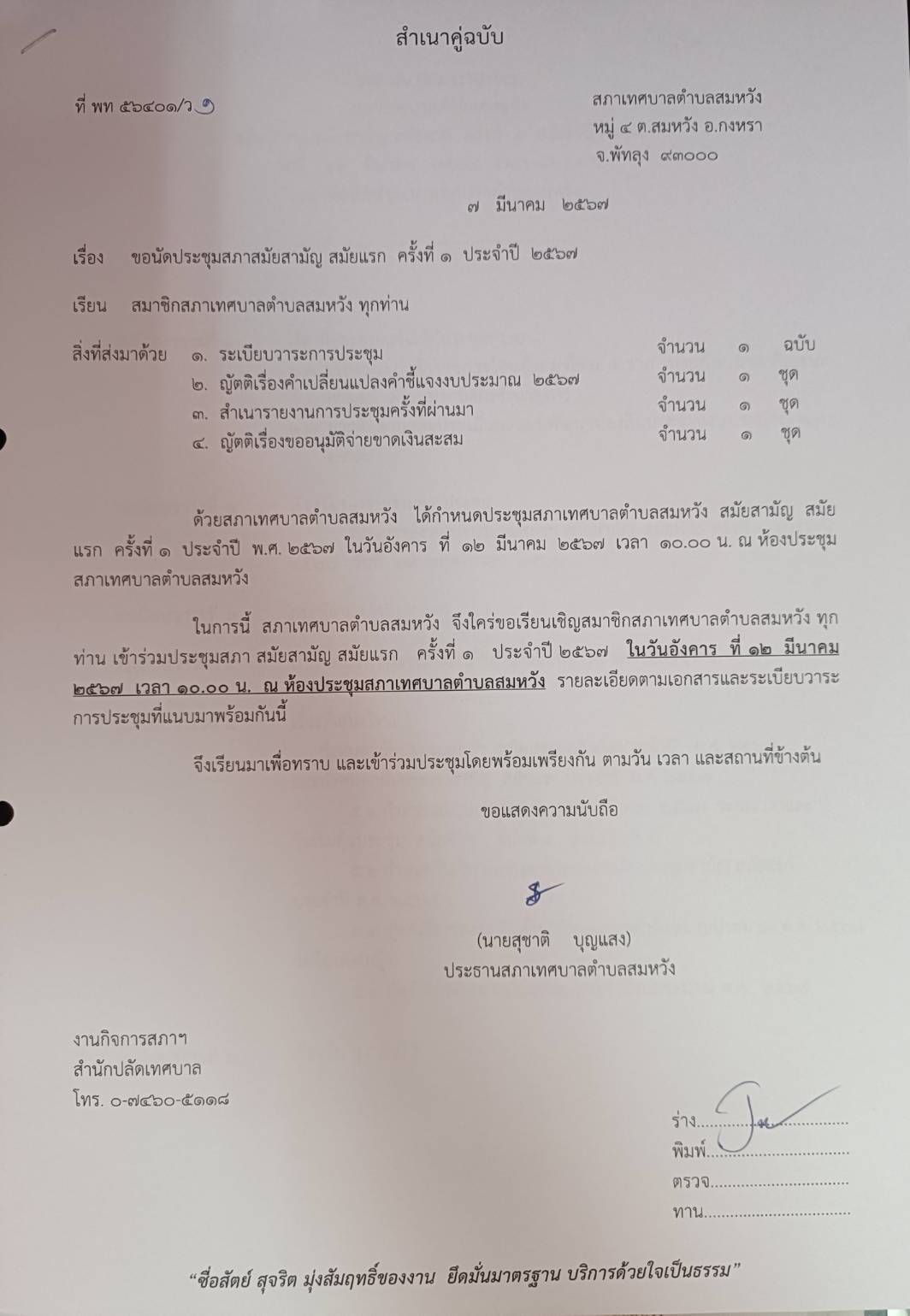 ขอนัดประชุมสภาสมัยสามัญ สมัยแรก ครั้งที่ 1 ประจำปี 2567