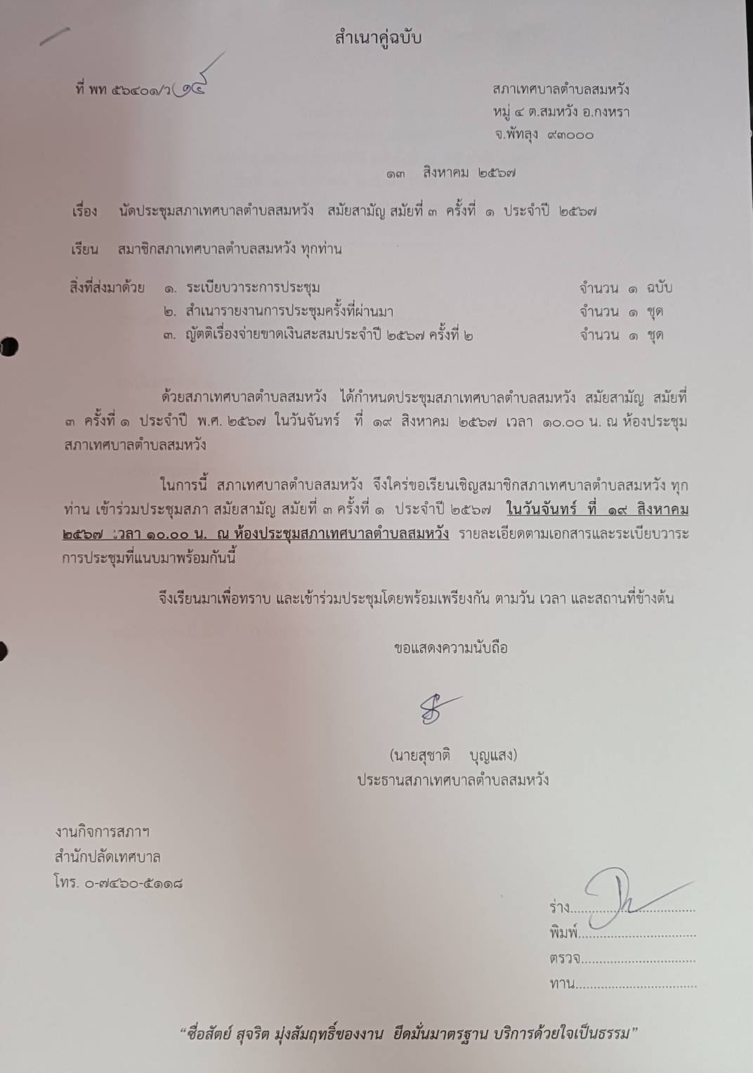นัดประชุมสภาสมัยสามัญ สมัยที่ 3 ครั้งที่ 1 ประจำปี 2567