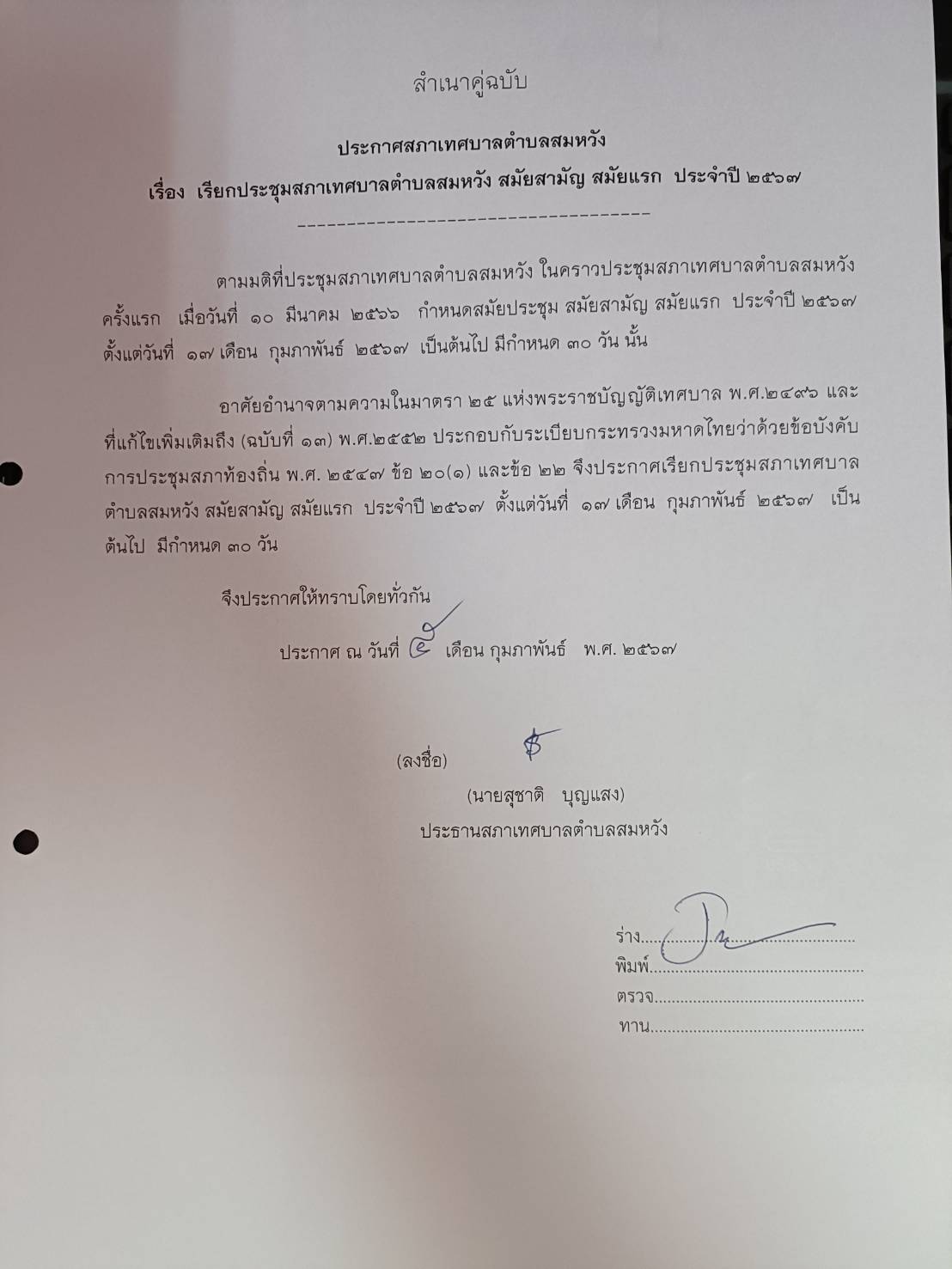 เรียกประชุมสภาสมัยสามัญ สมัยแรก ประจำปี 2567