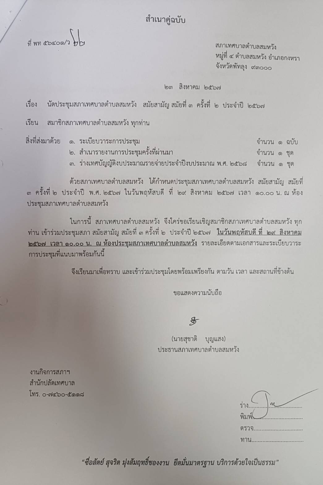 นัดประชุมสภาสมัยสามัญ สมัยที่ 3 ครั้งที่ 2 ประจำปี 2567