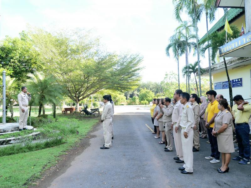 ร่วมกิจกรรมเคารพธงชาติและร้องเพลงชาติไทย เนื่องในวันพระราชทานธงชาติไทย (Thai National Flag Day) และเคารพธงชาติประจำเดือนตุลาคม ณ บริเวณหน้าเสาธงที่ทำการเทศบาลตำบลสมหวัง