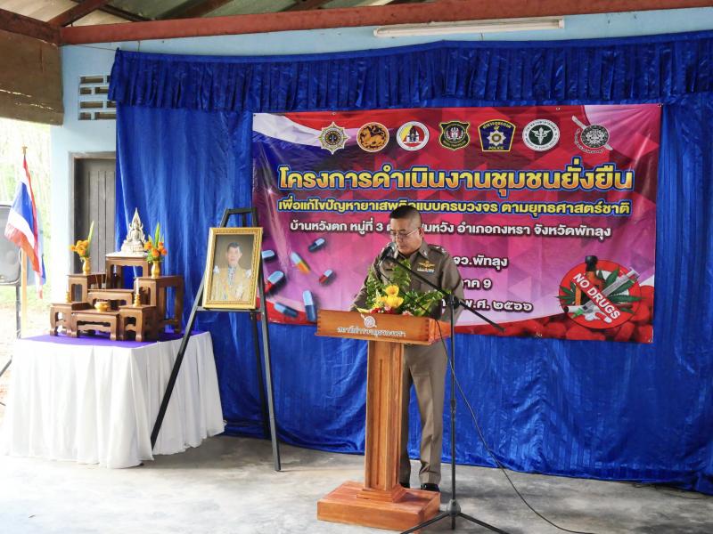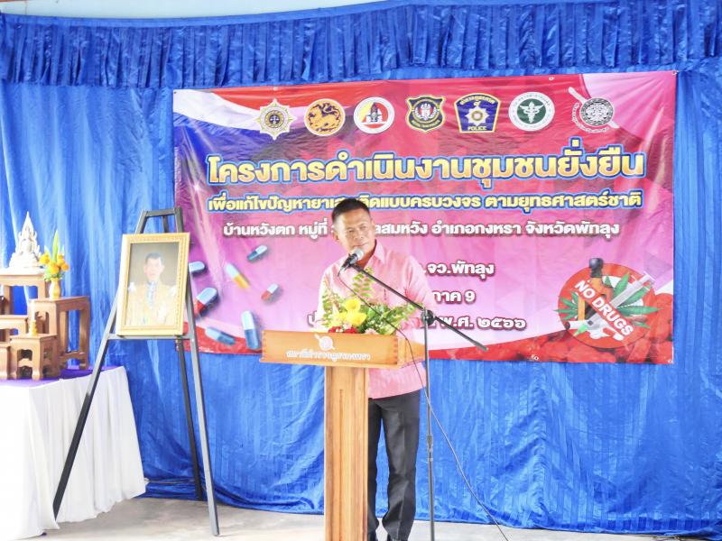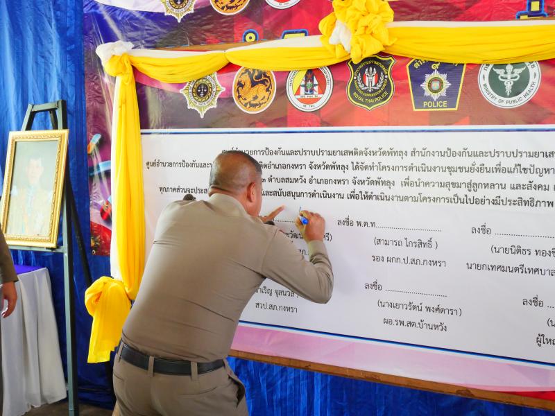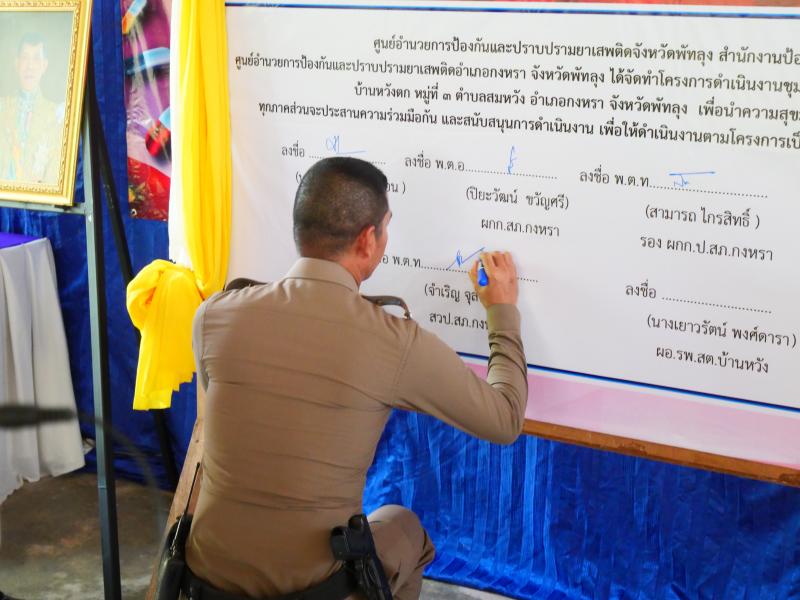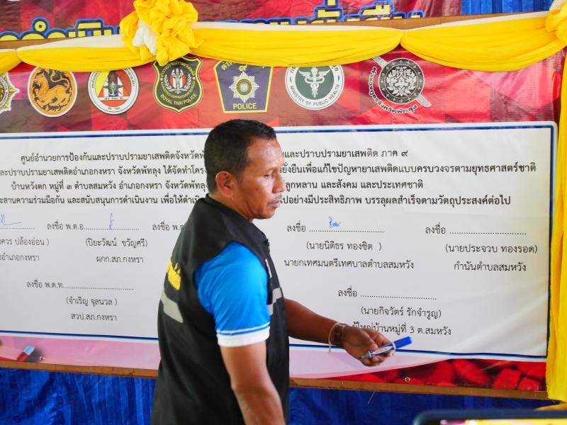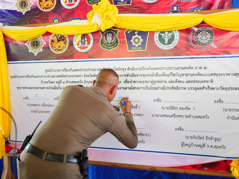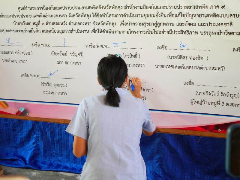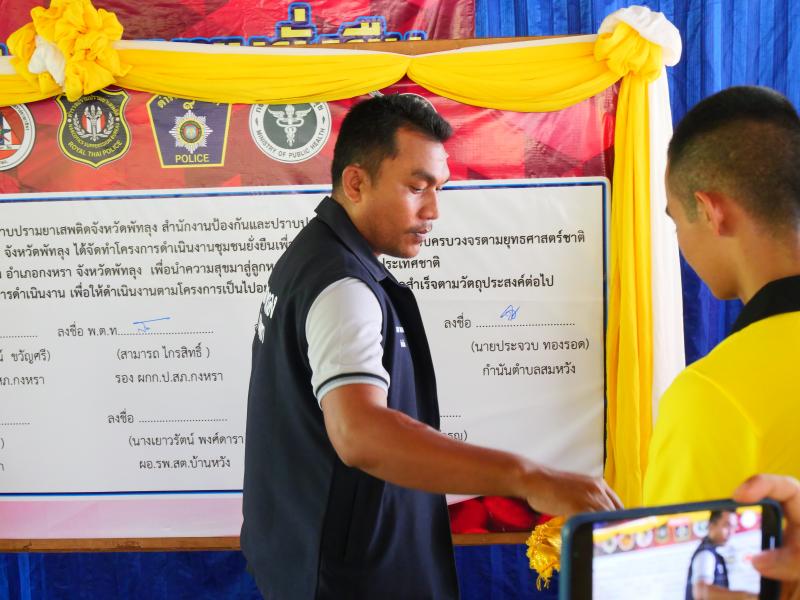 ร่วมกับศูนย์อำนวยการป้องกันและปราบปรามยาเสพติดจังหวัดพัทลุง สำนักงานป้องกันและปราบปรามยาเสพติด ภาค9 อำนวยการป้องกันและปราบปรามยาเสพติดอำเภอกงหรา จังหวัดพัทลุง