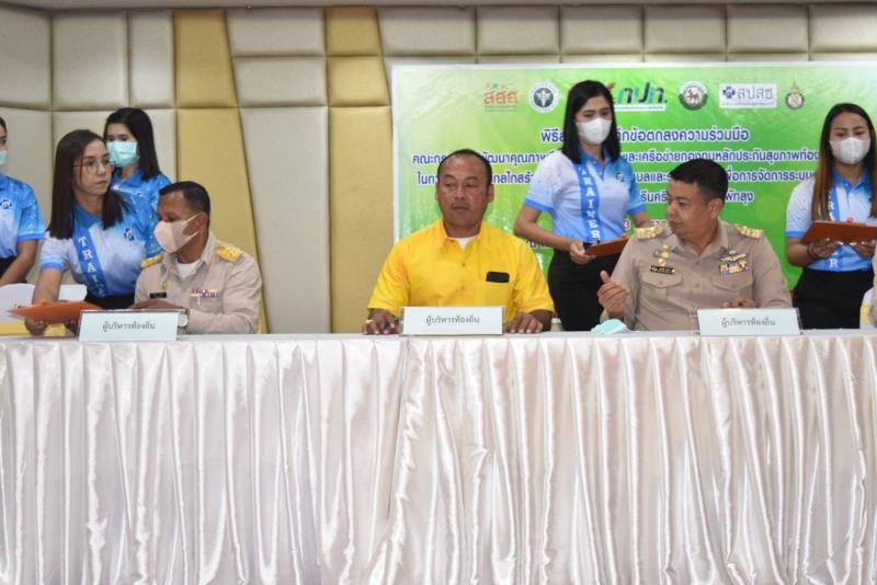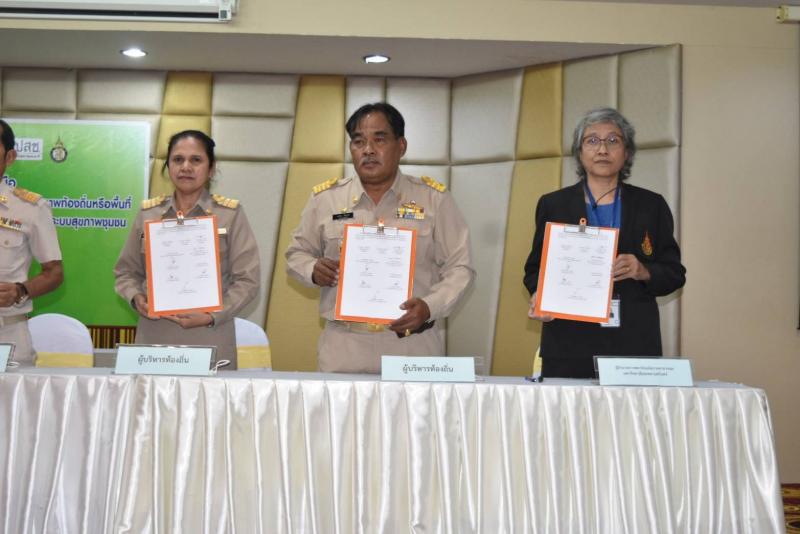 นายกเทศมนตรีตำบลสมหวัง ร่วมพิธีลงนามบันทึกข้อตกลงความร่วมมือตามโครงการบูรณาการกลไกสร้างเสริมสุขภาวะ ระดับตำบลและอำเภอเพื่อการจัดการระบบสุขภาพชุมชน