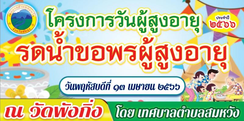 ขอเชิญร่วม "โครงการวันผู้สูงอายุ รดน้ำขอพรผู้สูงอายุ ประจำปี 2566" วันพฤหัสบดีที่ 13 เมษายน 2566 ณ วัดสมหวัง และวัดพังกิ่ง