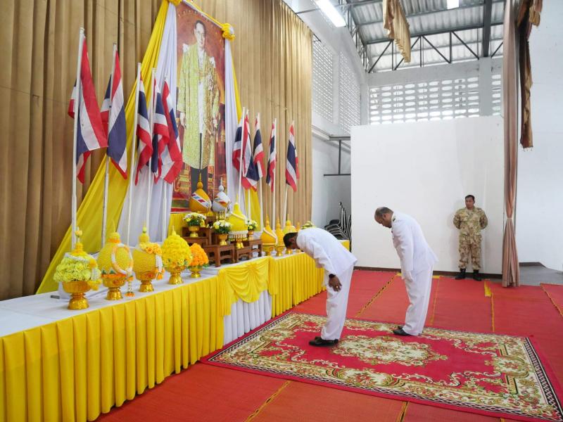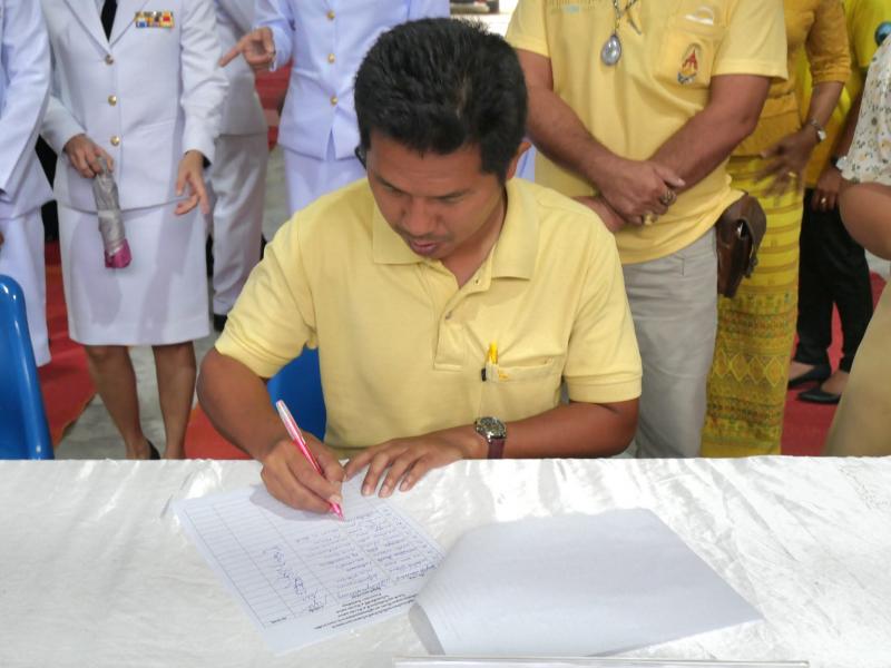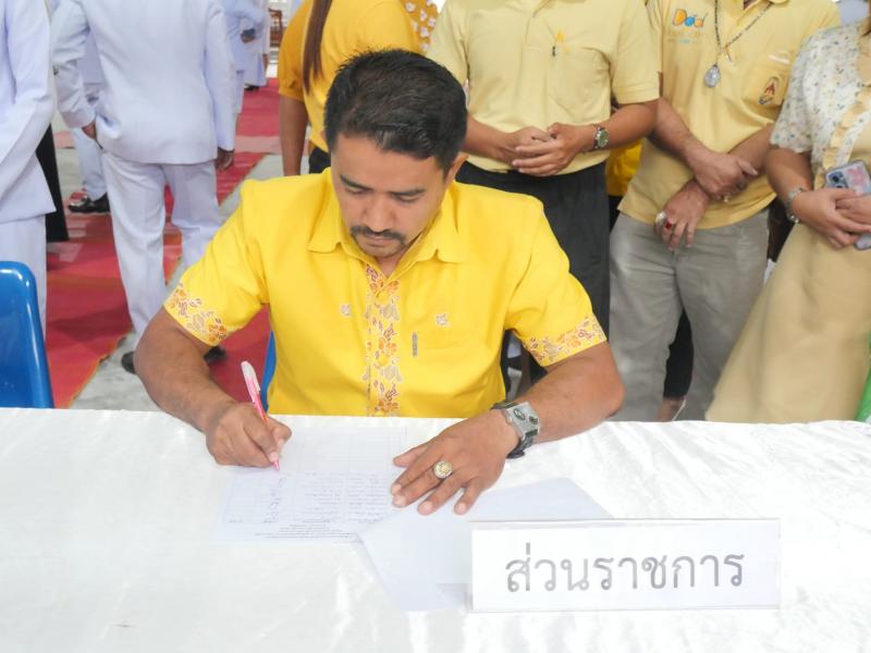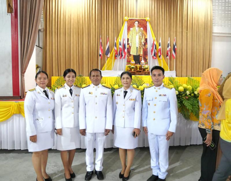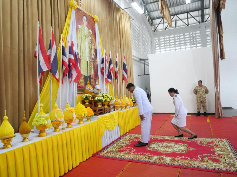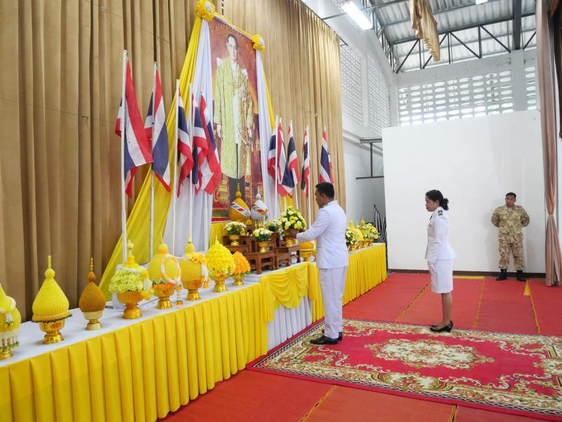 ร่วมพิธีวางพานพุ่มดอกไม้ถวายราชสักการะ หน้าพระบรมฉายาลักษณ์พระบาทสมเด็จพระบรมชนกาธิเบศร มหาภูมิพลอดุลยเดชมหาราช บรมนาถบพิตร เนื่องในวันคล้ายวันพระบรมราชสมภพพระบาทสมเด็จพระบรมชนกาธิเบศร มหาภูมิพลอดุลยเดชมหาราช บรมนาถบพิตร วันชาติและวันพ่อแห่งชาติ ณ หอประชุมอำเภอกงหรา อำเภอกงหรา จังหวัดพัทลุง