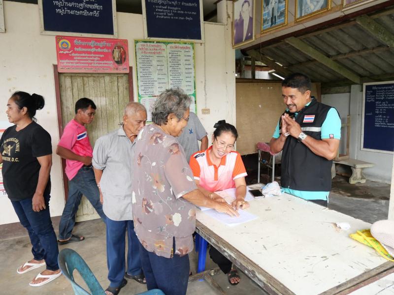ลงพื้นที่เยี่ยมให้กำลังและมอบถุงยังชีพให้กับประชาชาชน เพื่อช่วยเหลือบรรเทาความเดือดร้อนให้แก่ประชาชนผู้ประสบภัยจากสถานการณ์น้ำท่วม ณ ศาลาประชาคม ประจำหมู่บ้านทั้ง 7 หมู่บ้าน ภายในพื้นที่ตำบลสมหวัง