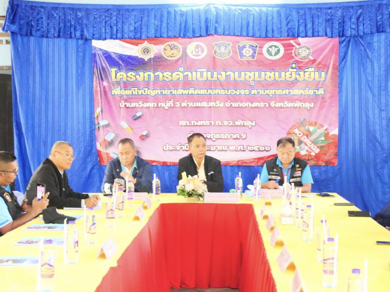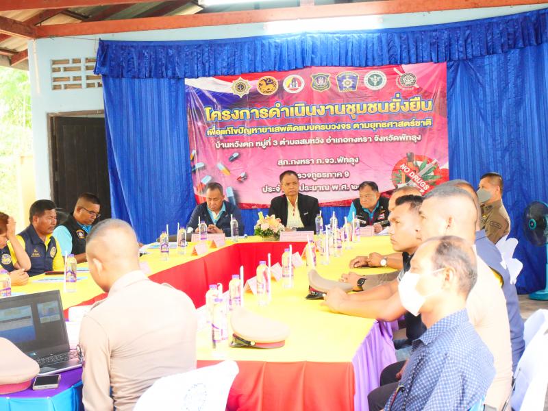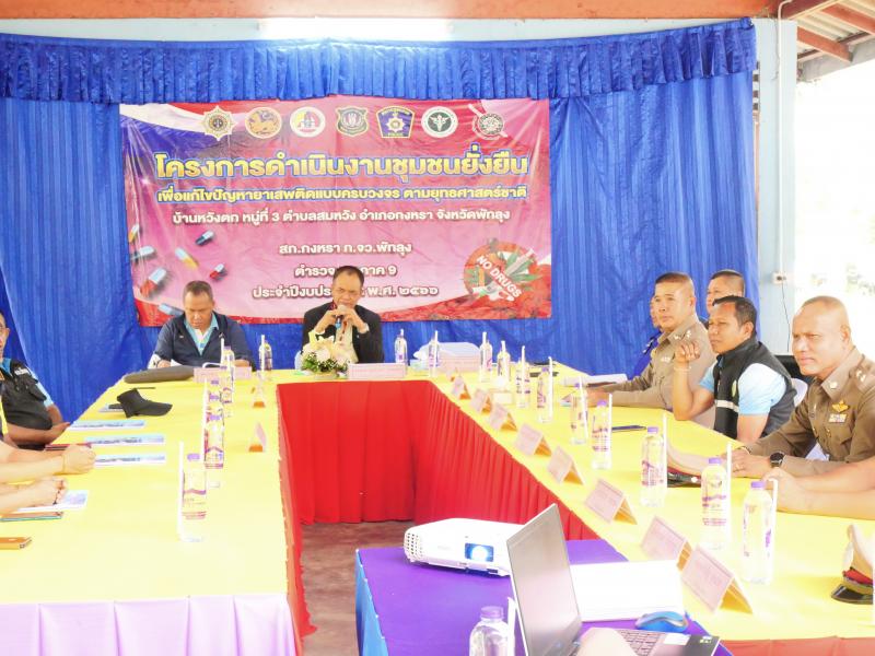 ร่วมต้อนรับ พล.ต.ท.บุญจันทร์ นวลสาย ข้าราชการบำนาญ/วิทยากรต้นแบบ พร้อมคณะ เพื่อตรวจประเมินโครงการชุมชนยั่งยืน เพื่อแก้ไขปัญหายาเสพติดแบบครบวงจร ตามยุทธศาสตร์ชาติ ในพื้นที่ตำบลสมหวัง ณ ศาลาประจำหมู่บ้าน หมู่ที่ 3 ตำบลสมหวัง อำเภอกงหรา จังหวัดพัทลุง