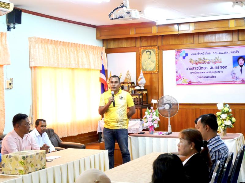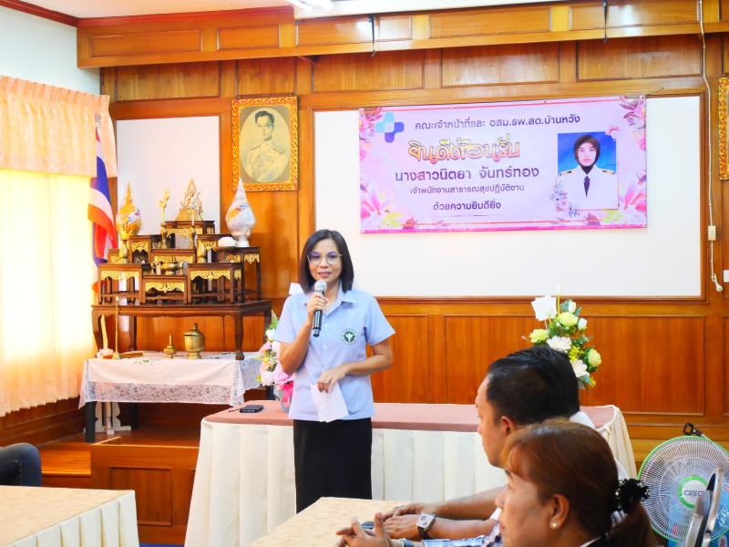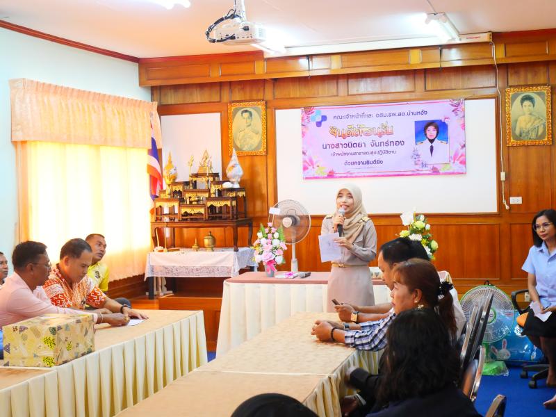 ร่วมต้อนรับนางสาวนิตยา จันทร์ทอง เจ้าพนักงานสาธารณสุขปฏิบัติงาน ได้ย้ายมาปฏิบัติงาน ณ โรงพยาบาลส่งเสริมสุขภาพตำบลบ้านหวัง หมู่ที่ 4 ตำบลสมหวัง