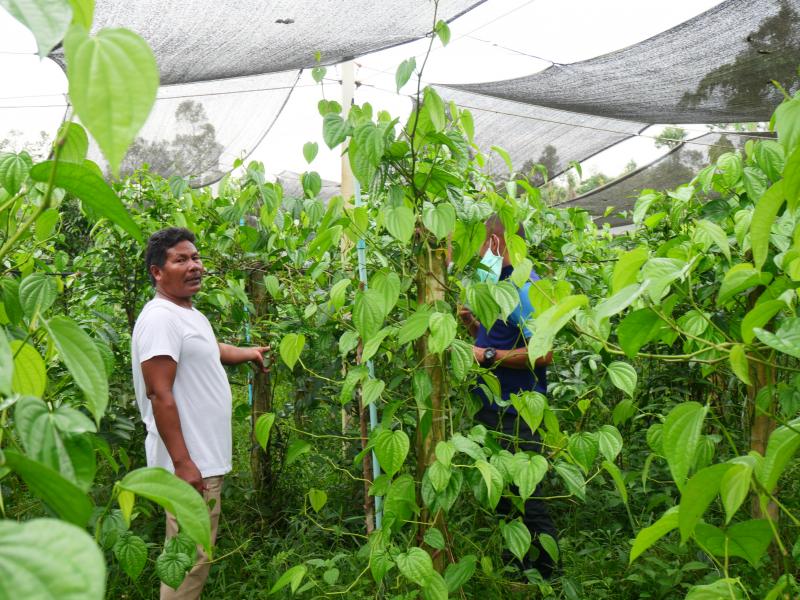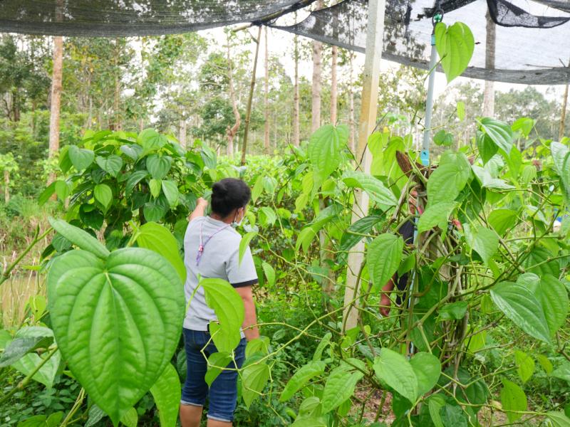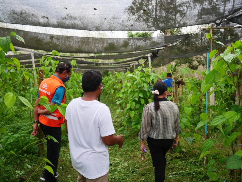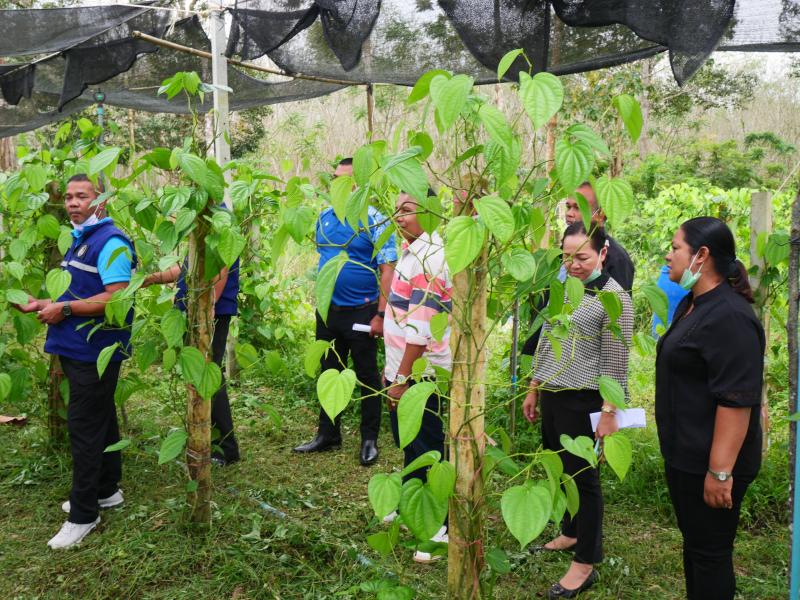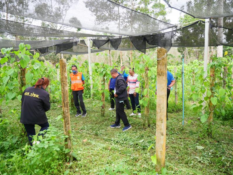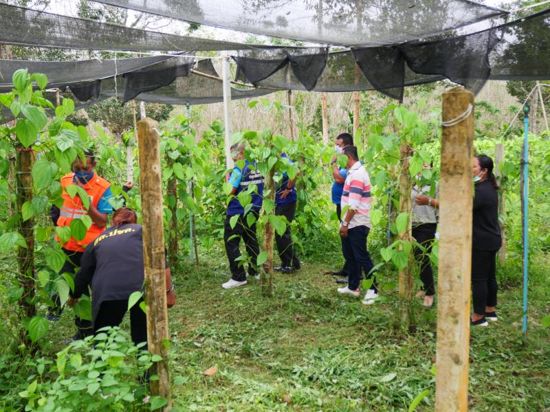 และร่วมกับชาวบ้านลงพื้นที่ติดตาม สำรวจสวนต้นพลู บ้านไสคุณเปลือย หมู่ที่ 5 ตำบลสมหวัง