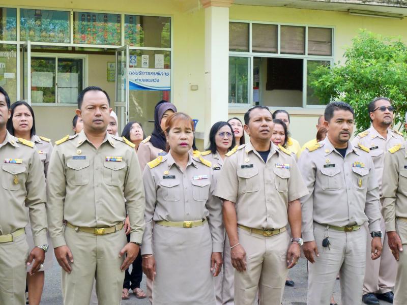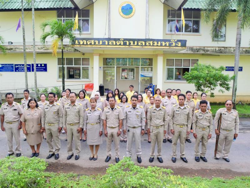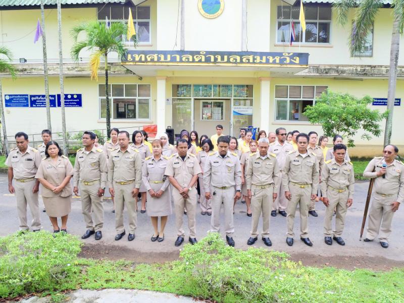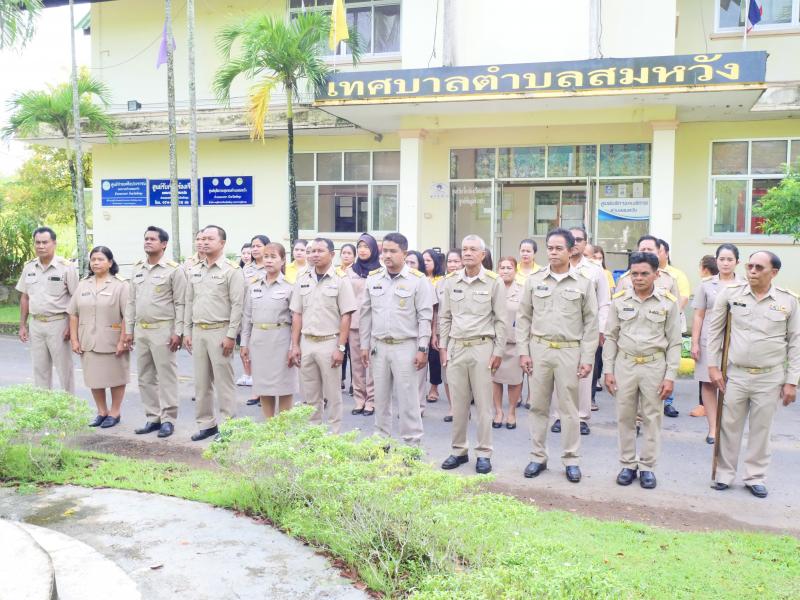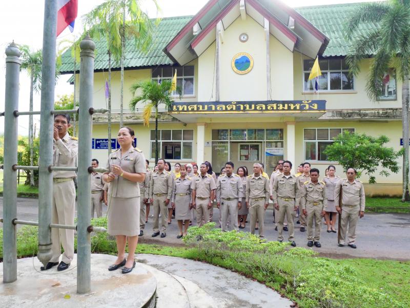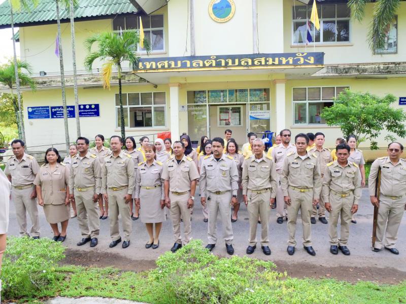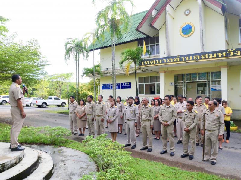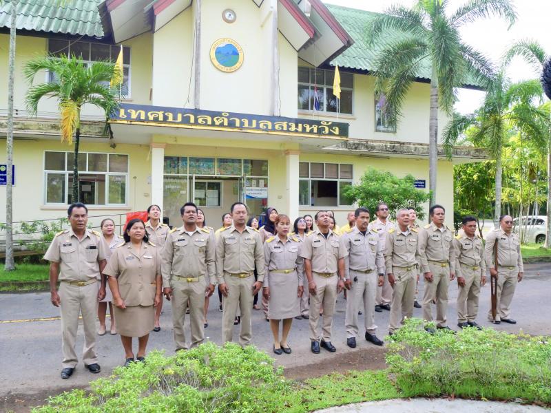 เทศบาลตำบลสมหวัง ร่วมกิจกรรมเคารพธงชาติและร้องเพลงชาติไทย เนื่องในวันพระราชทานธงชาติไทย