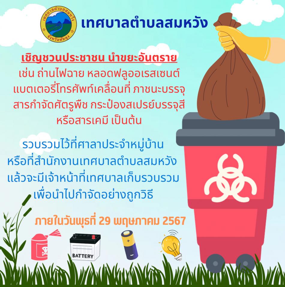 ขอเชิญชวนนำขยะอันตรายมารวบรวม เพื่อนำไปกำจัดอย่างถูกวิธี [24 พฤษภาคม 2567]